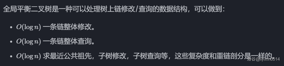 OI Wiki 把全局平衡二叉树和 LCT 都归到数据结构的动态树了,不过我不知道什么是动态树,所以先归到树剖这里吧。