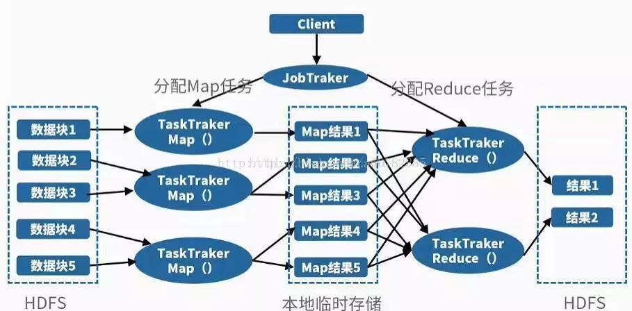 jobTracker:管理节点。将job分解为多个map任务和reduce任务。