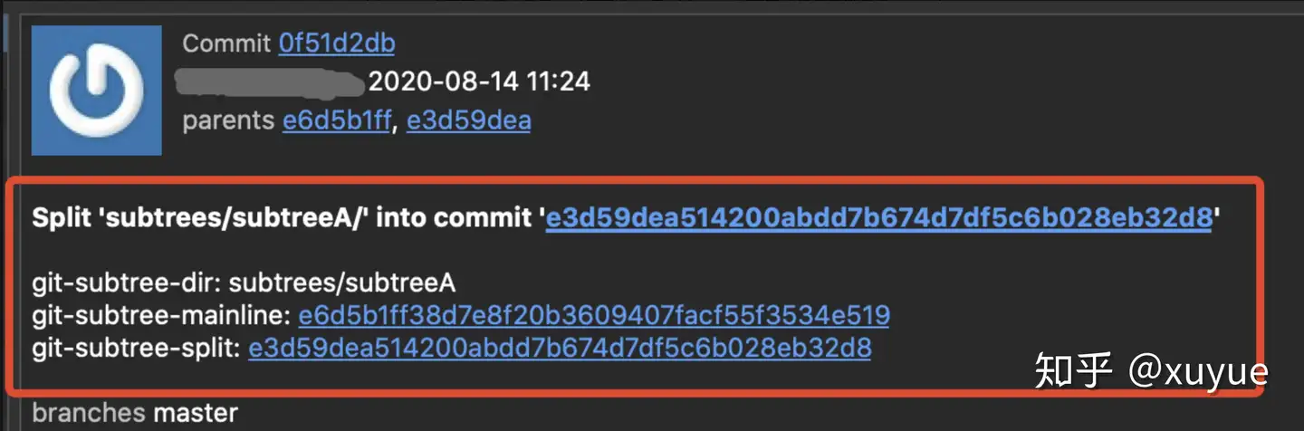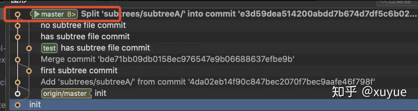 - 完整命令: git subtree split --prefix=subtrees/subtreeA --rejoin