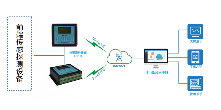 2、监测数据无线传输,平台上报。