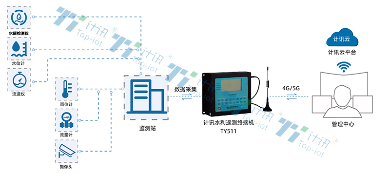 传输层:水利遥测终端,目标因子监测数据、仪器仪表信号值、参数值采集、存储、传输,上位机控制命令执行。