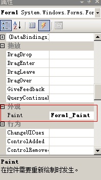 private void Form1_Paint(object sender, PaintEventArgs e) //在控件要重绘时发时这个事件