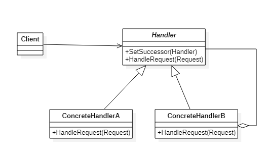- 降低了耦合度,把请求的发送者和接受者解耦,并且发送者不需要知道是谁处理了请求。