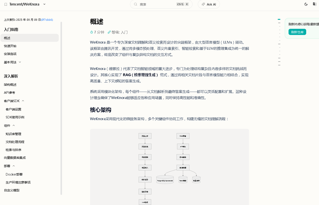 前文有《阿里Qoder的Quest小试牛刀》,之前行业中已经有DeepWiki与ZReader, 我们使用相同的开源项目WeKnora进行对比。这个工程包含源代码文件Go文件151个,ts文件15个,Vue文件18个。我们使用Qoder生成Wiki试试: