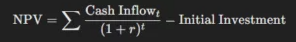公式:NPV = Σ [CF_t / (1 + r)^t]