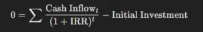 公式:0 = CF₀ + CF₁/(1+r) + CF₂/(1+r)² + CF₃/(1+r)³ + CF₄/(1+r)⁴
