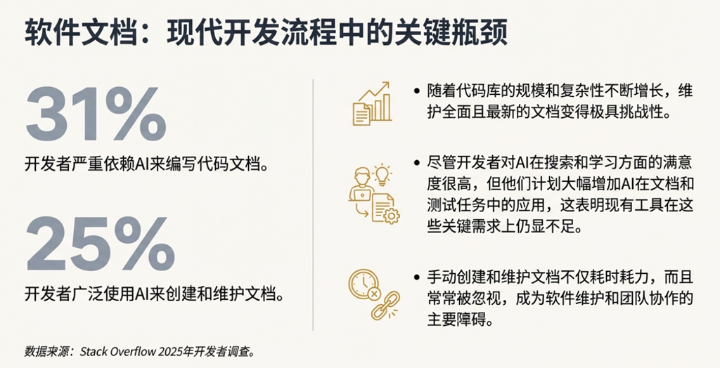 3. 维护的双重负担 团队现在不仅要维护日益复杂的代码库,还必须分出精力去维护和调优这个同样复杂的自动化文档生成系统本身。配置、模型更新、排查生成错误……工具本身变成了另一个需要被精心照料的“技术资产”,带来了新的维护成本。