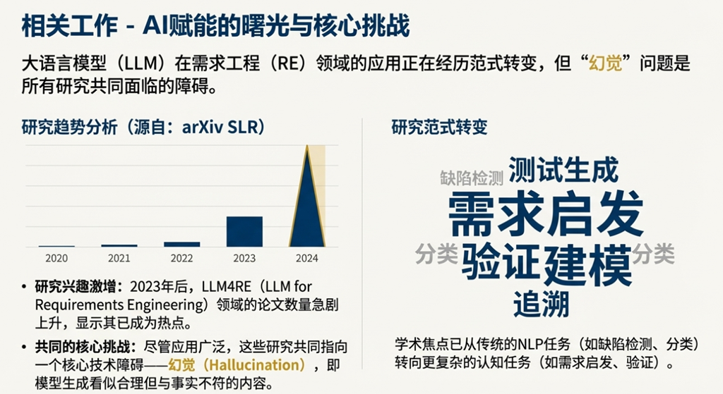 LLM的一个核心风险是“幻觉”(Hallucination),即模型会生成看似合理、语法流畅,但实际上是错误或凭空捏造的信息。在需求工程中,这种“自信的错误”是极其危险的。