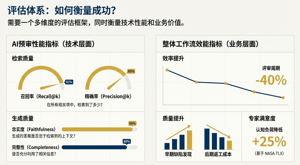 本文提出的“AI预审 + 人工审查”协同模式,是当前平衡技术能力与业务风险的最佳实践。该模式将LLM定位为高效的“预审引擎”,负责处理标准化、格式化和基础缺陷检测等繁重任务,从而将人类专家的宝贵精力解放出来,专注于验证商业意图、解决复杂冲突和承担最终责任等高价值活动。通过建立持续的反馈闭环,这个系统还能不断学习和进化,变得越来越智能。
