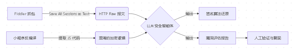 - 逆向辅助:利用LLM分析反编译后的混淆JS代码,还原签名算法。