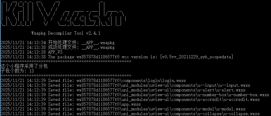 KillWxapkg -id=wx857888d1186577f0 -in="__APP__.wxapkg" –restore