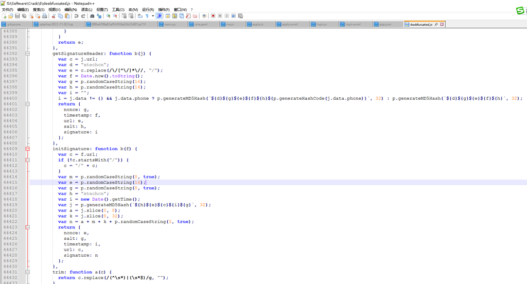 在对小程序解包(使用 KillWxapkg)并定位到关键业务逻辑后 ,我们发现所有敏感接口都带有 signature、nonce、timestamp 等防篡改头