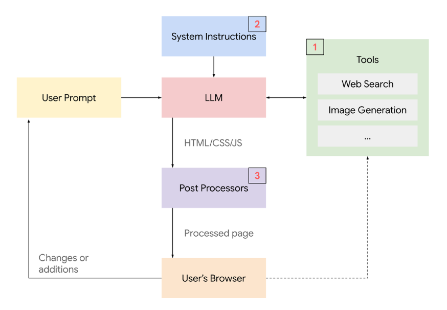 3. 轻量级后处理器 (Post-processors) 尽管最先进的模型能力已非常强大,但在生成复杂的代码时仍可能出现一些常见的、模式化的小问题。后处理器的作用就是在模型输出后,自动进行一系列检查与修复。其职责包括安全地注入API密钥、修复常见的HTML/CSS/JavaScript语法错误、以及处理其他可预测的遗留问题,从而保障最终页面的健壮性。