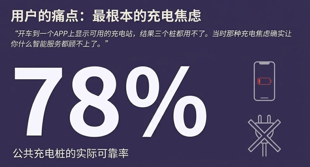 ◦ 充电可靠性是用户的主要痛点,一项研究表明,全美仅有78%的公共充电桩是可靠的(来源:EV Charging Summit Blog)。