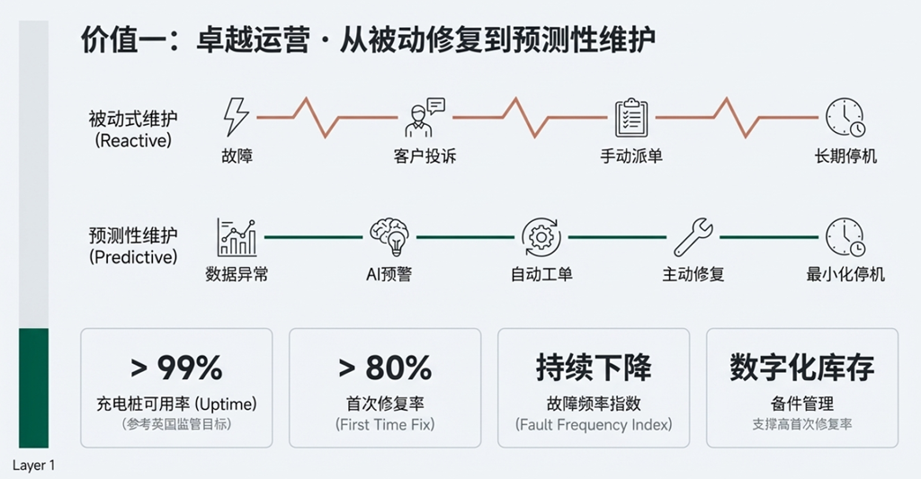 导致这一困境的根本原因在于,行业普遍依赖于一种被动的、基于客户投诉的“反应式维护”模式。这种滞后的运维方式直接导致了三大负面后果:首先是极差的用户体验;其次是高昂的维护成本,因为故障发生后的紧急维修远比预防性维护昂贵;最后是低下的资产投资回报率(ROI, Return on Investment),频繁的停机时间直接侵蚀了运营商的收入。