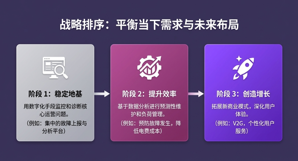 1. 加速数字化转型,构建数据驱动的核心竞争力 强烈建议运营商将投资重心放在建设一体化的工业物联网(IIoT)平台之上。应将预测性维护、智能负荷管理和用户行为分析视为三大支柱,它们是提升运营效率、优化成本结构和最大化盈利能力的基石。企业必须摆脱传统的硬件思维,将自身定位为数据和能源服务公司。