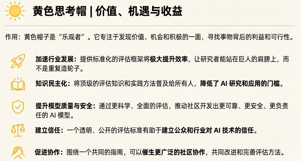 Hugging Face 开放评估生态的核心价值与战略意义。面对现代 AI 模型评估在标准化、可复现性和评估维度上的严峻挑战,它提供了一个强大而优雅的解决方案。通过在 Hugging Face 生态系统中推广一种标准化、可复现和社区驱动的评估范式,不仅解决了从业者的实际痛点,更为整个开源 AI 行业设定了新的标杆。