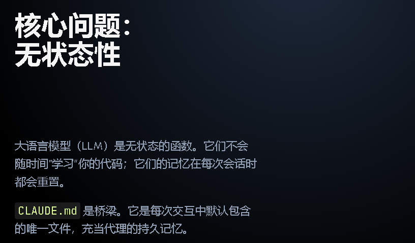 AGENTS.md,这是 CLAUDE.md 的开源等价物,适用于 OpenCode、Zed、Cursor 和 Codex 等代理和工具。原则:大语言模型(绝大部分)是无状态的