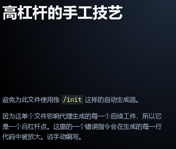 不要使用 /init 或自动生成你的 CLAUDE.md