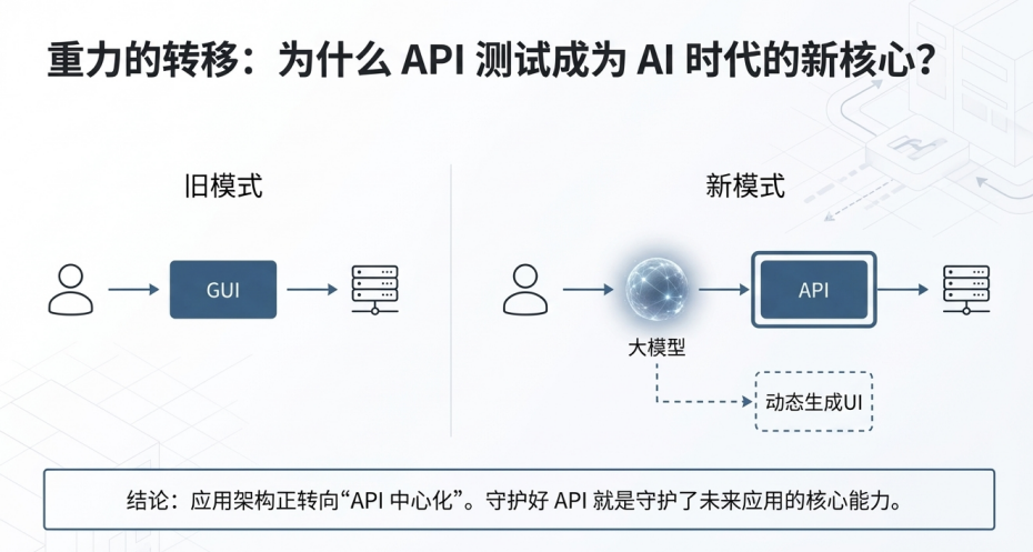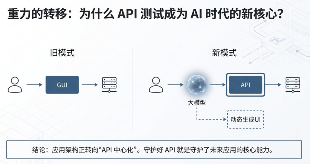 在AI原生时代,API测试的重要性被提升到了前所未有的战略高度。这不仅因为API是现代应用架构的核心,更因为AI技术的发展趋势正在从根本上改变人机交互的方式,使得后端能力的API化成为主流。因此,保障API层的质量,已然成为保障整个应用稳定性的基石。