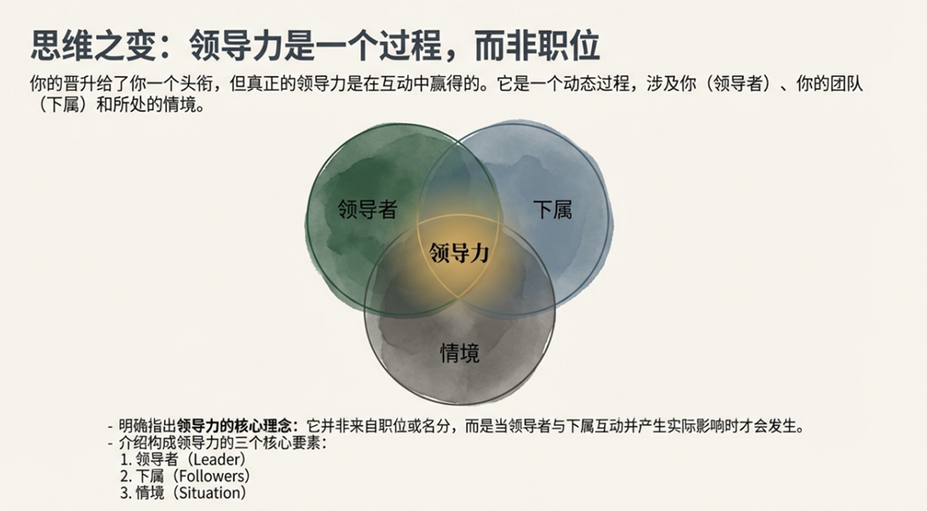 在我多年的教练生涯中,我发现一个最普遍、也最具限制性的误解,就是将“领导力”与“职位”划上等号。真正的领导力并非静态的权力符号,而是一个涉及领导者、下属和特定情境三者之间复杂互动的动态过程。它的本质,是发生在人与人之间、能够持续产生积极影响的一种能力。