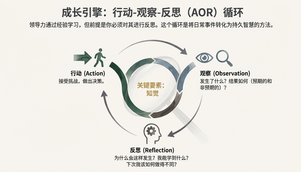 领导力并非与生俱来,也非一蹴而就,它是在持续的学习循环中被磨练出来的。这个循环的核心,就是“行动-观察-反思”(Action-Observation-Reflection)模型,它是你未来一切成长的基石。