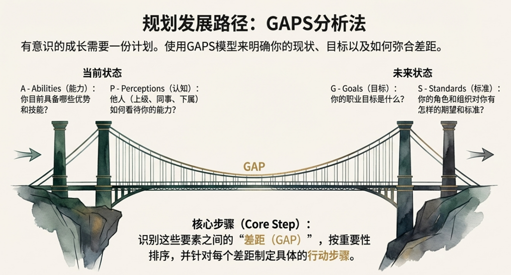 一份清晰的个人发展计划(Personal Development Plan)是你自我导航的地图。GAPS分析法是一个强大而简洁的工具,可以帮助你系统地规划自己的成长路径。