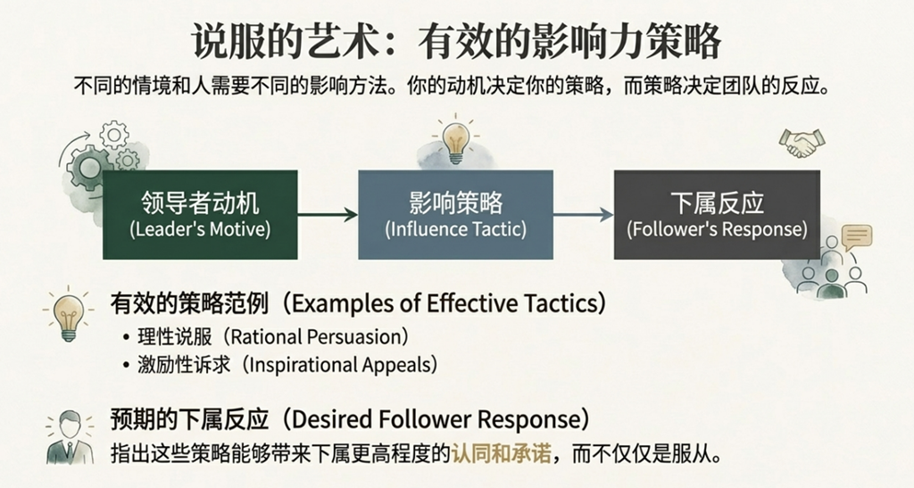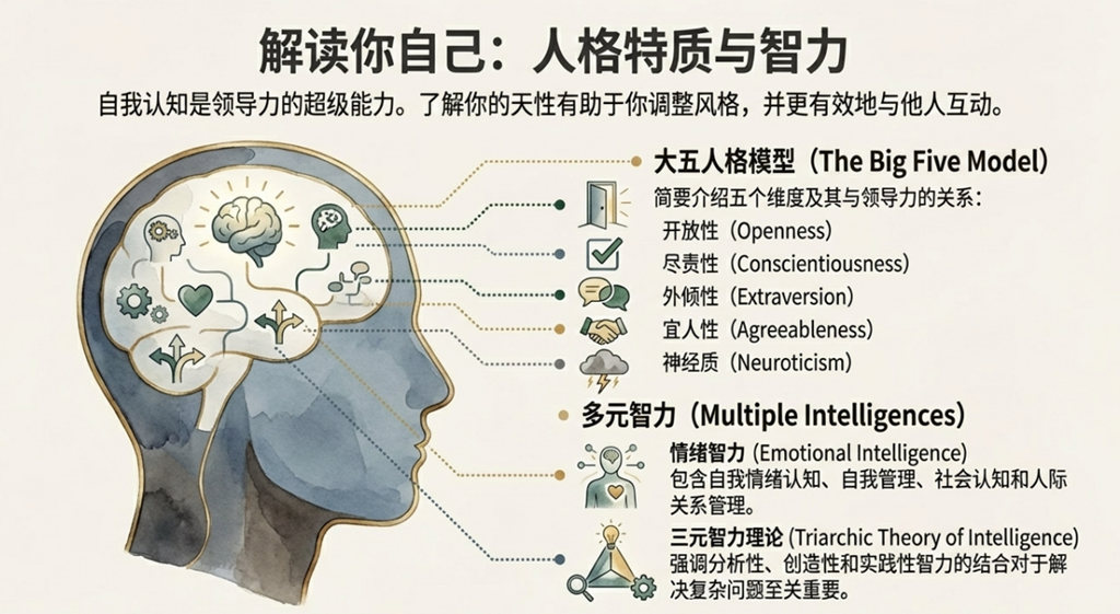 深入探讨了领导力这一复杂主题,将其定义为一种动态的互动过程,而非单纯的职位或头衔,涉及领导者、下属和特定情境三要素。详细阐述了如何通过行动、观察与反思的循环模型来提升领导技能,并区分了单环学习与双环学习的本质差异,强调了后者在思维模式调整中的关键作用。此外,它还系统地分析了领导者个人发展的多方面内容,包括上任初期的关键行动、运用五种社会权力基础来施加影响力、价值、伦理与品格在建立信任中的核心地位,以及大五人格模型和情绪/三元智力如何共同作用于领导行为。