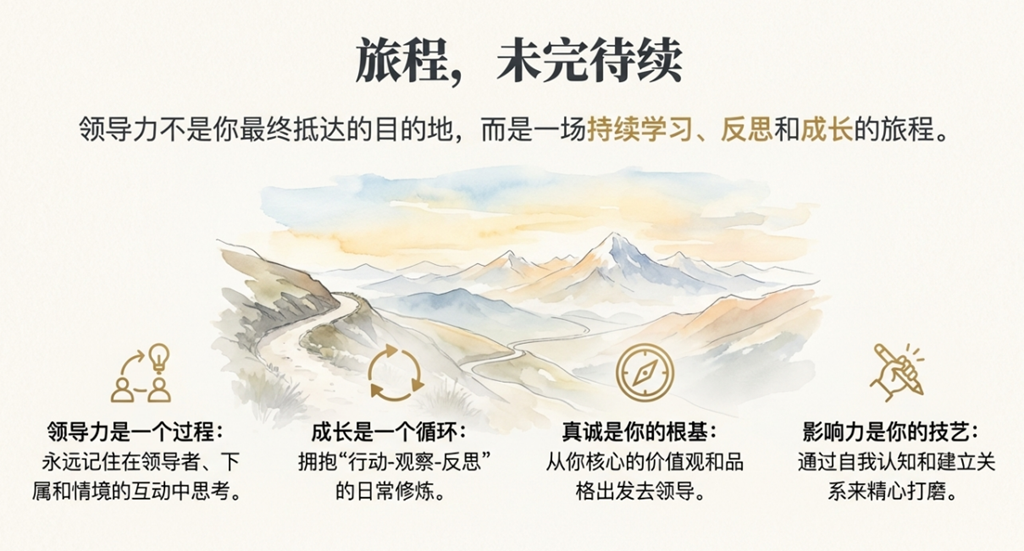 领导力不是一个需要到达的终点,而是一场永无止境的旅程。它充满了挑战,也伴随着无与伦比的成长喜悦。