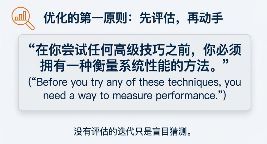 在尝试任何优化技巧之前,我们必须先完成一项至关重要的准备工作:建立一个可靠的评估体系。正如专家所强调的: