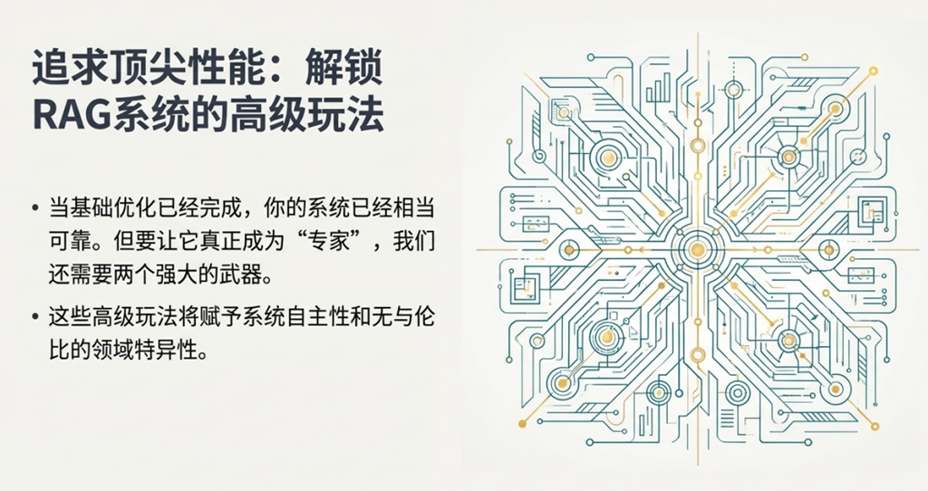 探讨两个更复杂但潜力巨大的前沿方向。尽管这些方法可能带来更高的复杂性、延迟和成本,但它们能让RAG系统处理更复杂的推理任务,并在特定领域达到极致性能。