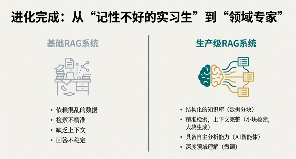 学习小结与过渡:当检索算法的优化达到极限时,我们的路线图将引向终极目的地:通过改造系统架构和模型本身来释放RAG的全部潜力。