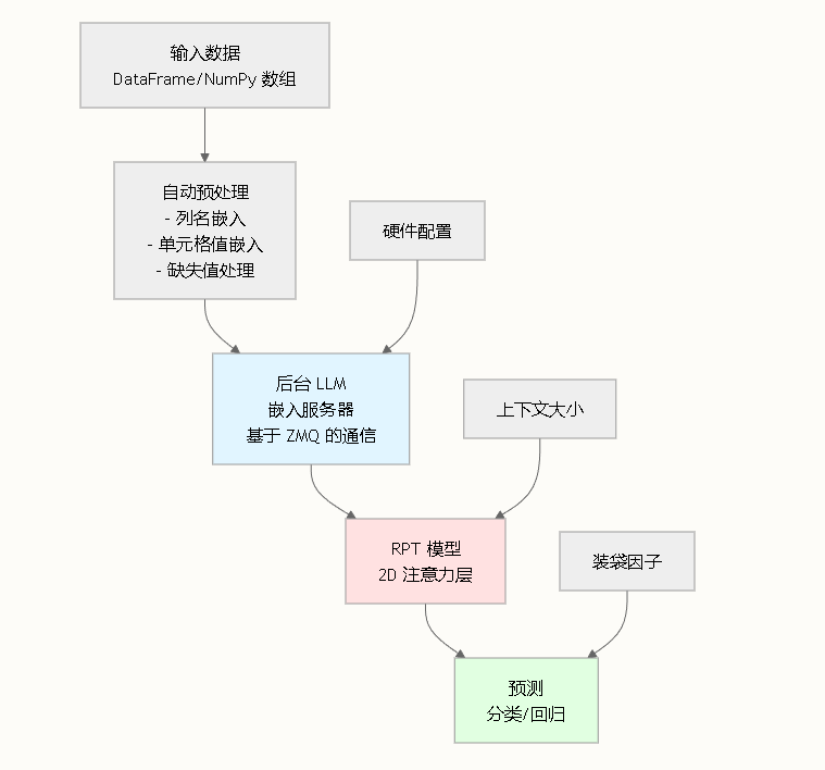 该模型接受原始表格数据作为 pandas DataFrame 或 NumPy 数组输入,无需任何预处理——列名和单元格值通过后台 LLM 服务自动嵌入,缺失值得到优雅处理,模型通过兼容 scikit-learn 流水线的统一估计器接口支持分类和回归任务。这种语义感知能力使模型能够利用真实业务数据中嵌入的世界知识和领域特定术语,在需要深度语义理解的基准测试中树立了新的性能标准。