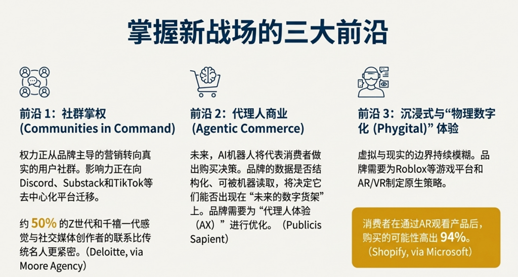 社群掌控 描述了一种决定性的权力转移:影响力正从品牌精心策划的、自上而下的营销活动,转向真实、由成员参与的社群网络。这些网络活跃在Discord服务器、Substack简报和私人论坛等空间。