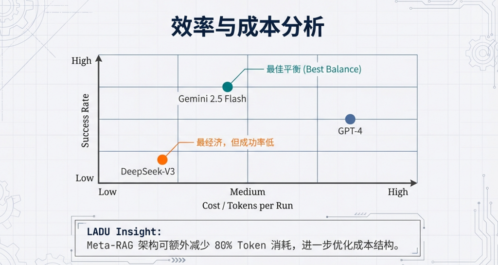 - 成本:DeepSeek-V3 最经济,GPT-4.1 成本波动最大,Gemini 2.5 Flash 存在高成本长尾案例。