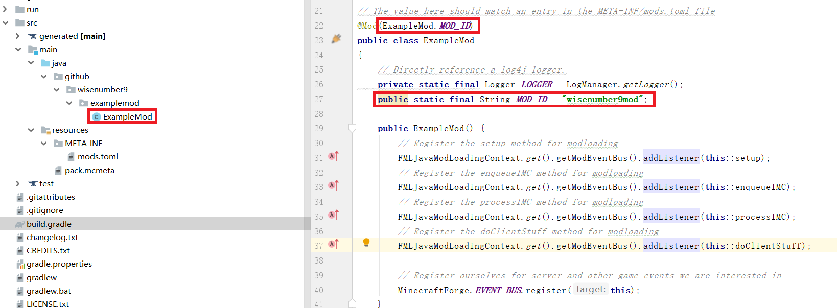 1.先修改modId