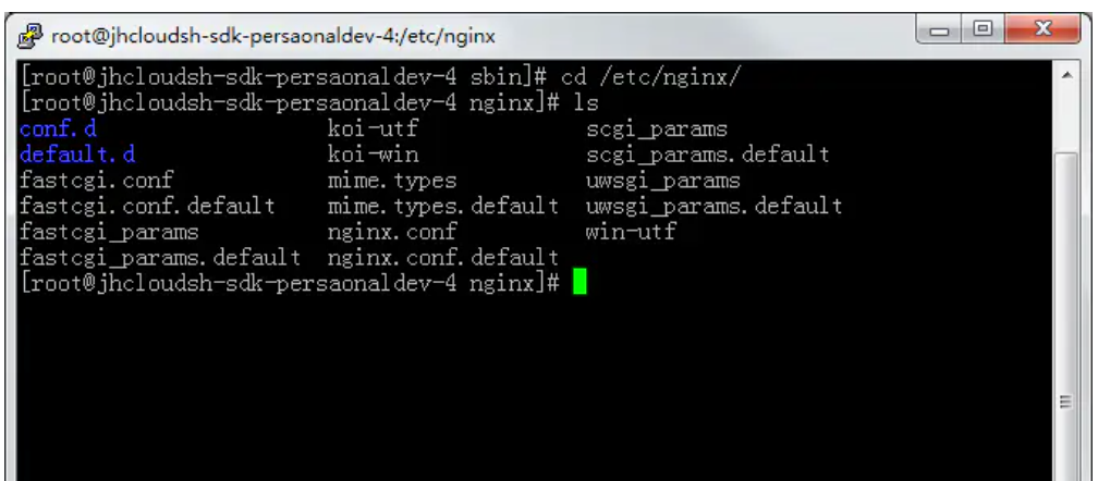 我们先cd进/ect/nginx目录(cd的时候前面加上/表示系统根目录,~表示用户根目录)