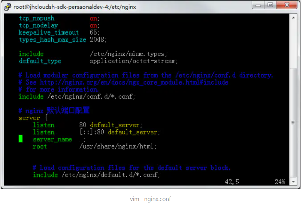 我们的目标文件是nginx.conf,然后我们通过vim打开nginx.conf