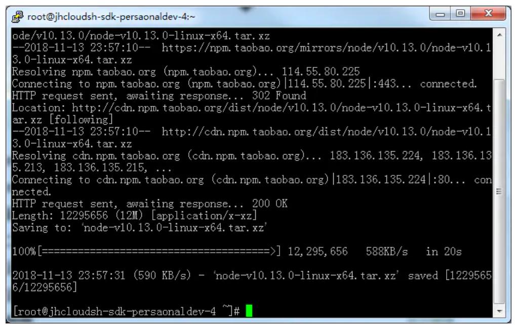 wget -c https://npm.taobao.org/mirrors/node/v10.13.0/node-v10.13.0-linux-x64.tar.xz