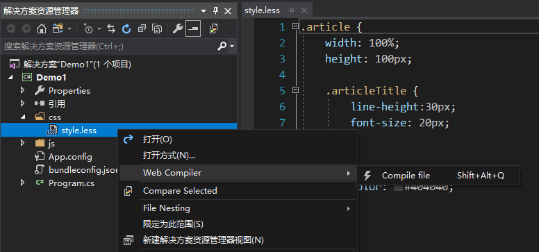 官方文档>>https://github.com/madskristensen/WebCompiler