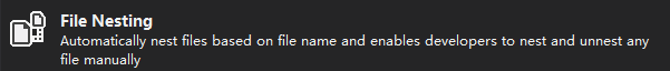 如上图所示,在想要被内嵌的文件上右键,选择【File Nesting】-【Nest item】,选择要内嵌到的目标文件,即可将当前文件内嵌到目标文件的子级