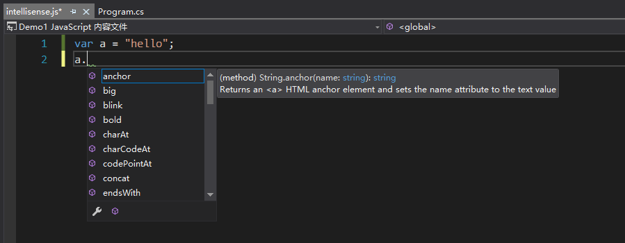intellisense是一个相当复杂的内核,因为要实时识别用户编写的代码,而且还要区分不同的语言(C++、C#、html、js、css等等),微软使用了不同的引擎来为不同的语言提供服务。由于不同语言的差异性,intellisense为不同语言提供的提示程度也各不相同,目前C++和C#是被intellisense完美支持的语言,而作为典型的弱类型语言js,intellisense对它的支持属实难做。