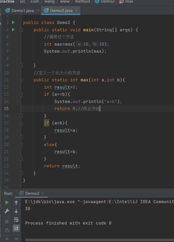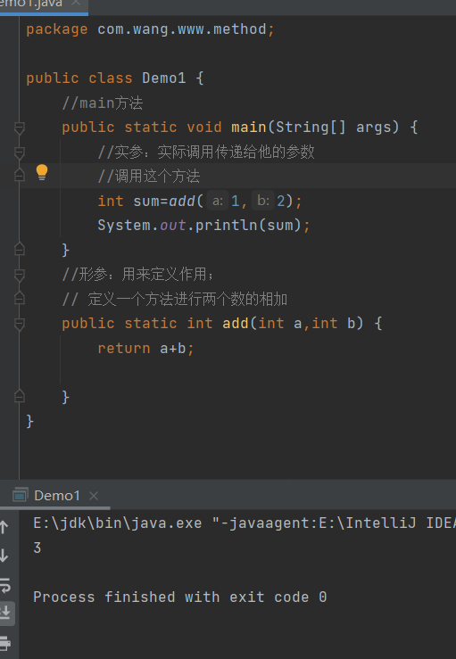 方法是语句的集合,在一起执行一个功能,方法包含与类和对象中,在程序中被创建,在其他地方被调用。