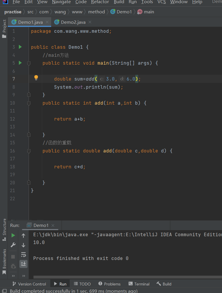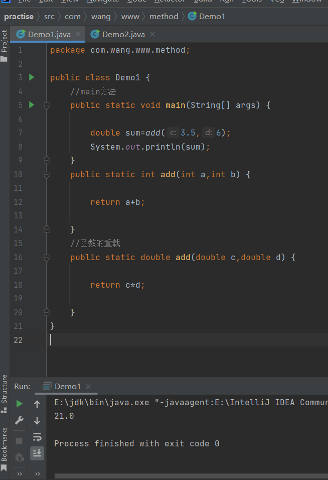 重载就是一个类中,有相同的方法名,但形参不同的参数