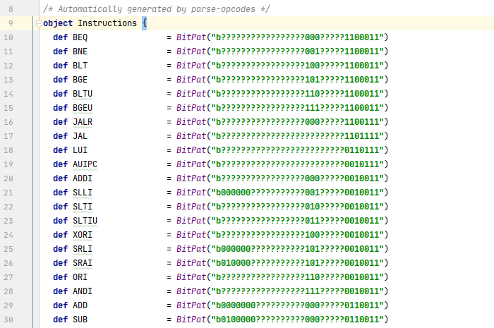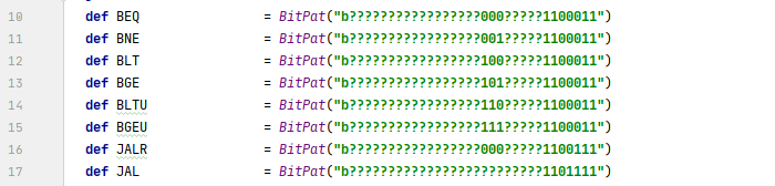 定义各个指令的比特模式:
