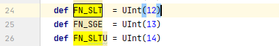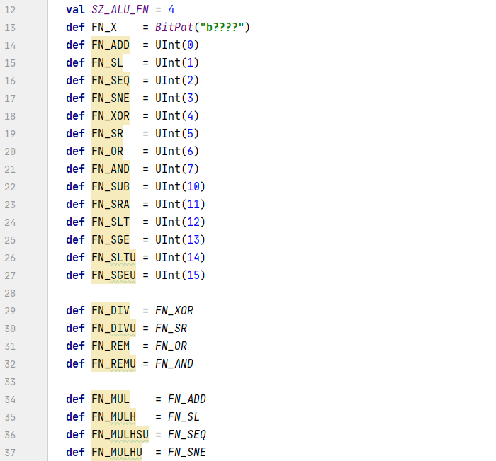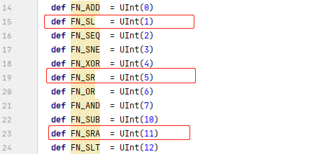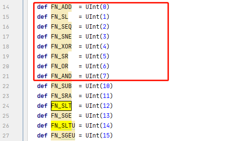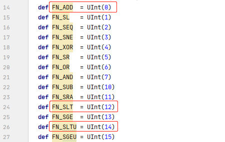 而FN_ADD/FN_SLT/FN_SLTI占用4位,并且有不同的值:
