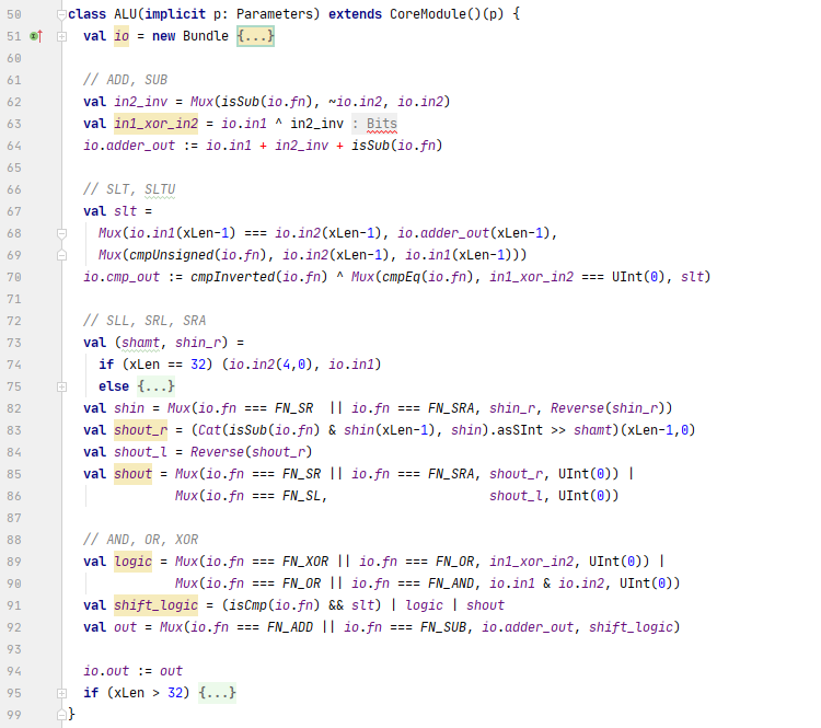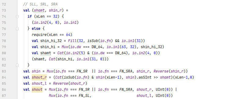 b. Cat(isSub(io.fn) & shin(xLen-1), shin)用于为shin添加一个正确的符号位: