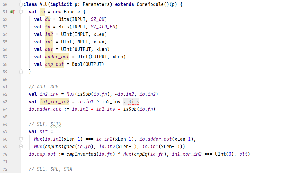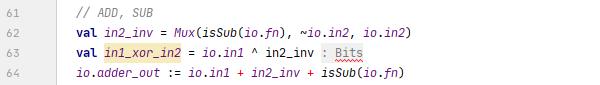 b. 如果不是减法,则in2_inv等于io.in2,而io.adder_out是相加的结果;
