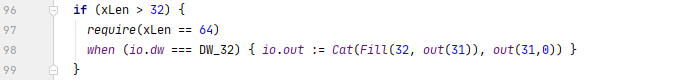 C. 当xLen != 32时,要求xLen必须是64,否则不支持。然后对io.in1进行补位处理: