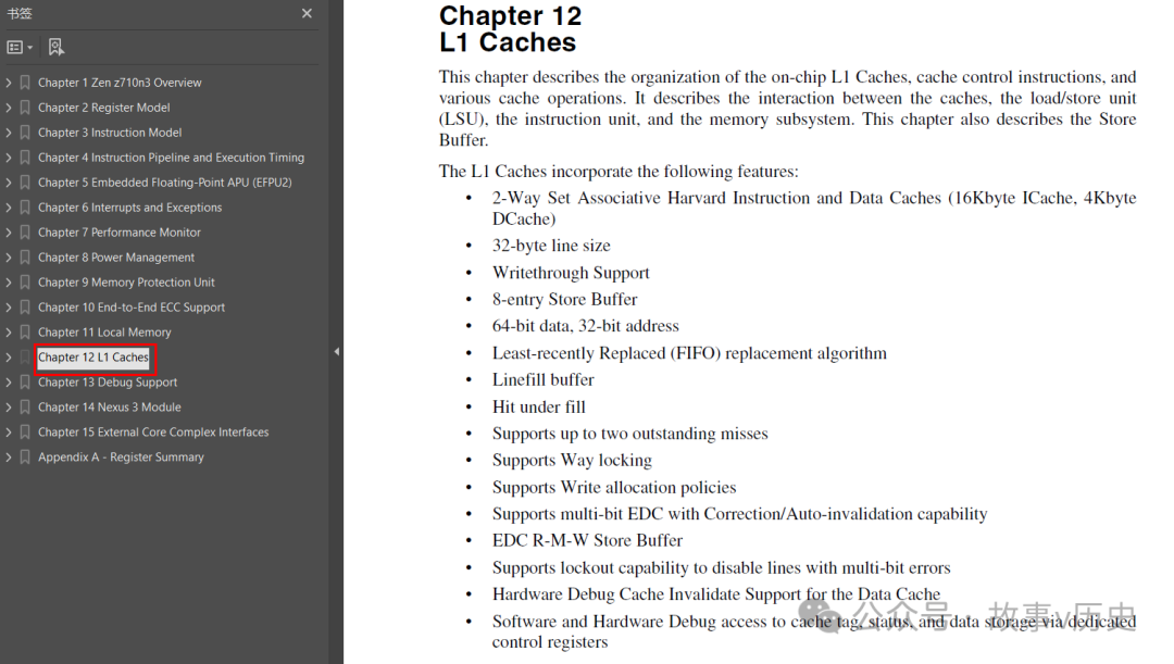 核心手册第12章介绍核心的L1 Caches相关的内容: